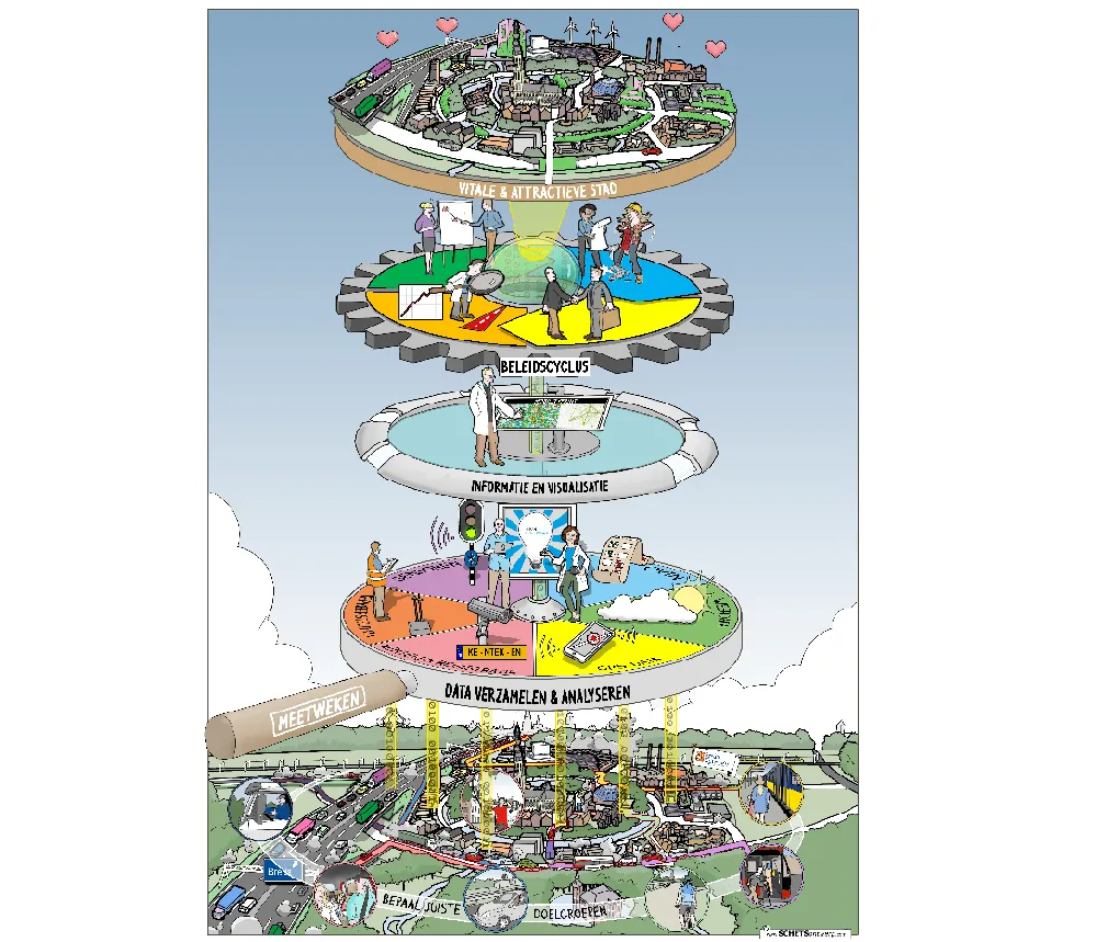 > Verhalende en uitleggende illustraties over stad en ruimte