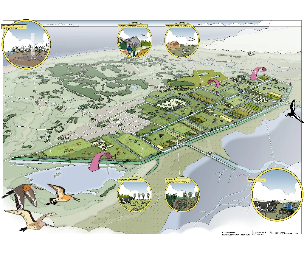 Vogelvlucht duurzame landbouw Schiermonnikoog in opdracht en samenwerking met Strootman landschap architecten
