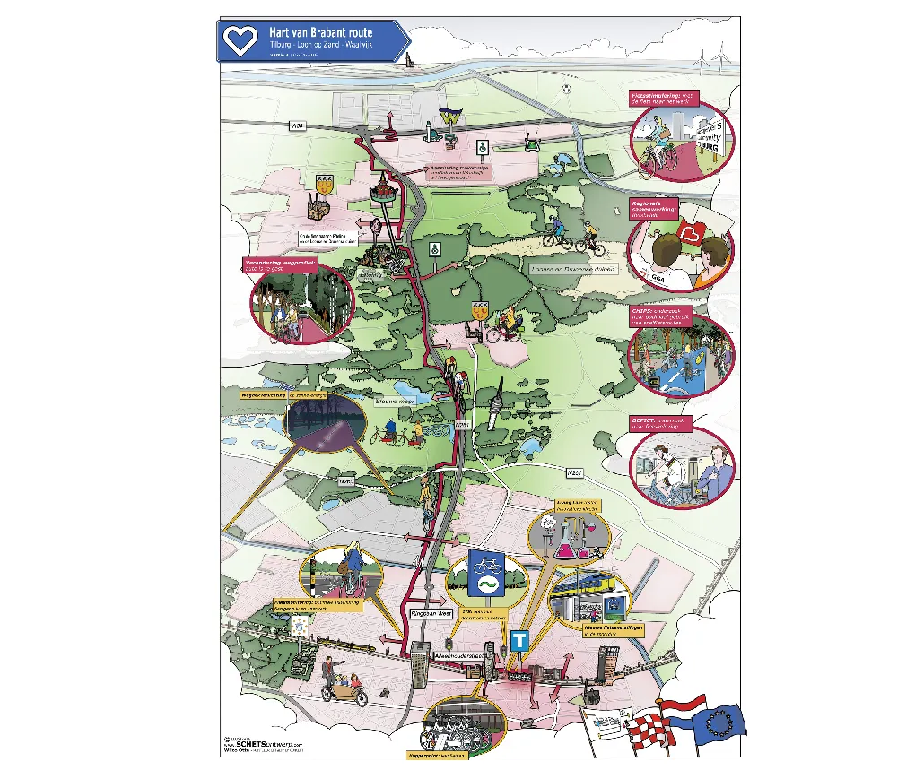 Overzichtskaart van fietsinnovaties en snelfietsroute waalwijk-tilburg in opdracht van de NHTV en gem.Tilburg